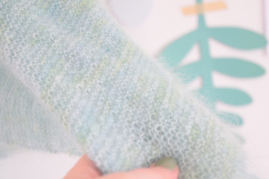Met deze mohair achtige zachte garen vind ik het altijd het allermooist om ermee te breien. De textuur wordt dan gewoon het allermooist. Soepel en de zachtheid komt nog meer naar voren. Het is alsof je een wolkje om hebt haha.