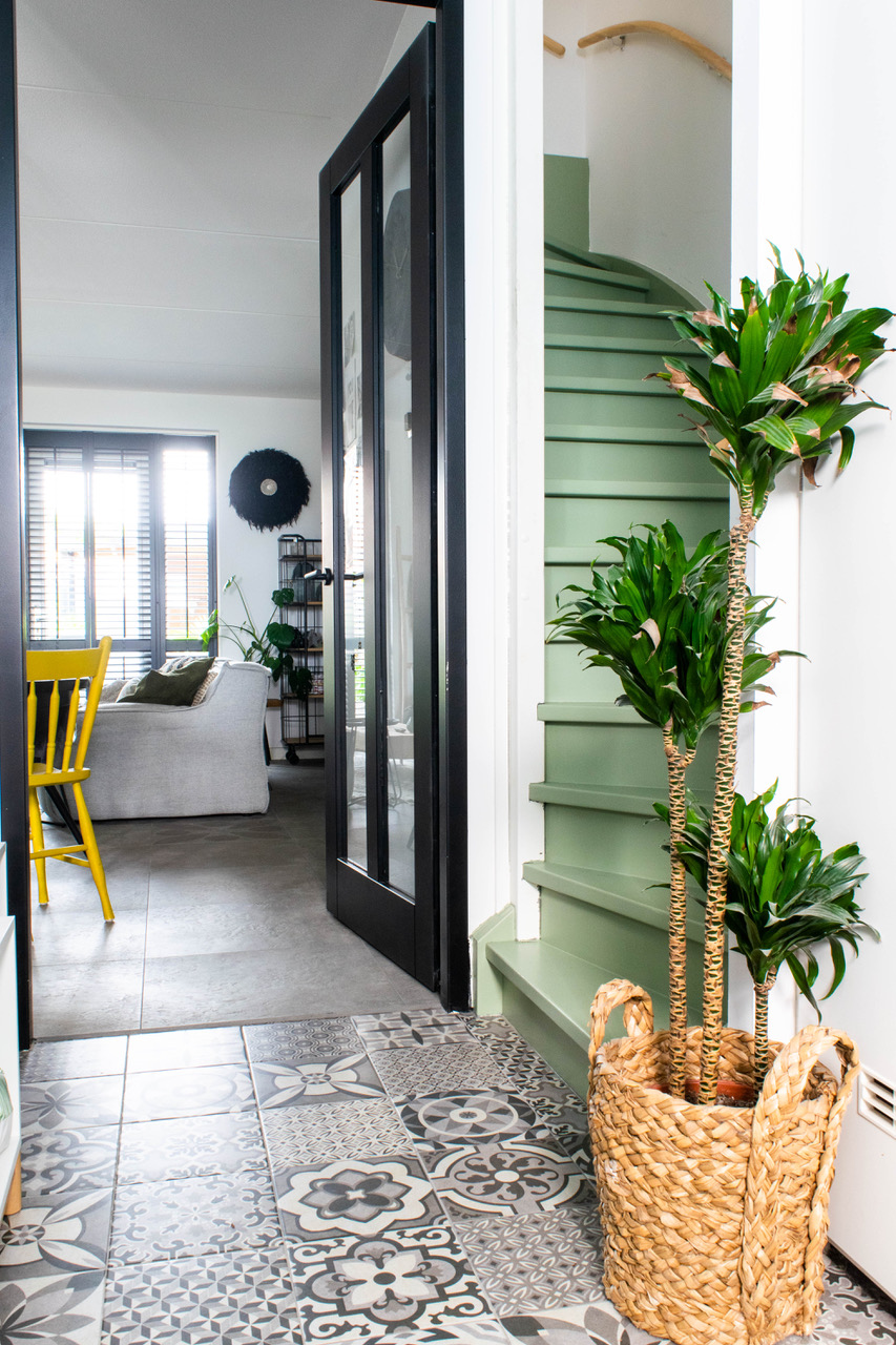Het eerstvolgende project wat we gaan aanpakken is onze tap. De vorige bewoners hadden er vloerbedekking op en dat was echt aan vervanging toe. Het was een hele klus om hem kaal te maken en het lichte hout wat eronder vandaan kwam vond ik prachtig. Er staat zelfs nog met potlood een nummer op de trede geschreven opgeschreven vanuit de bouw. Zo grappig vond ik dat. Maar inmiddels vind ik het toch wat te druk ogen en zou ik het fijn vinden als de trap een mooie strakke uitstraling krijgt. Ik wil hem verven in een toffe kleur! Ik werd geïnspireerd door mijn collega interieurblogger Ilse van Interiortwin. De verf is al besteld :) Nu nog een vrij weekend vinden om deze grote klus aan te pakken.