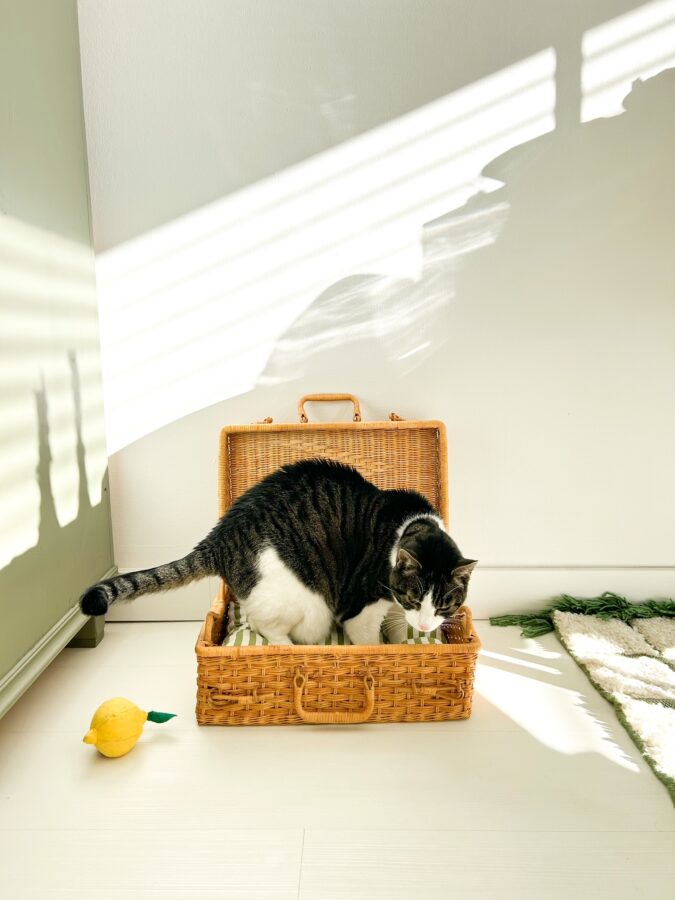 Ik maakte weer eens iets leuks van een kringloopvont. Ik scoorde een leuk oud rieten koffertje bij de kringloop. Het zag er meteen al erg leuk uit maar ik dacht daar kan ik wel iets mee maken. En ging het koffertje van kringloopvondst tot kattenmand. Het is een leuke, snelle en simpele DIY. En natuurlijk is di project ook heel geschikt voor een hondje.